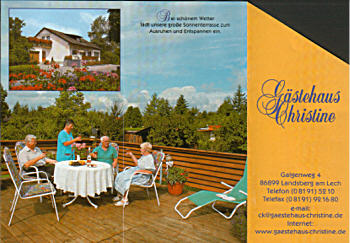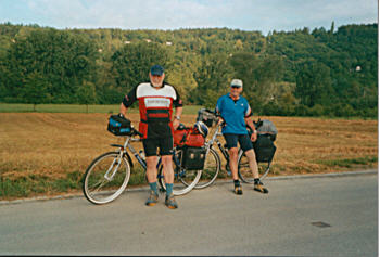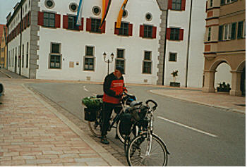 | Peter und ich haben in einem Gartenhäuschen geschlafen, was sehr gemütlich war. Um 7.30 Uhr nach dem Frühstück sind wir gestartet. Es war kalt und deshalb haben wir unsere langen Sachen angezogen. Dann sind wir über Ehringen nach Nördlingen gefahren (schöne alte Stadt - bekannt durch das Nördlinger Ries). Dann weiter auf dem Radweg an der B 25. Möltingen-Harburg, der Wörnitz entlang bis Donauwörth, wo wir die Donau überquerten. Teilweise sind wir bis hierher auch auf der B 25 gefahren. Ab Donauwörth ist die B 25 Schnellstraße und somit für Radfahrer gesperrt. Weiter ging es über Nordheim-Asbach-Mertingen-Druisheim-Westendorf-Meitingen bis Langenweid. Die Strecke wurde ab Donauwörth flacher und somit hatten wir keine großen Steigungen zu bewältigen. Die Fahrt ging weiter durch das Lechtal. Ab Langenweid ging es zum Lech. Dort fuhren wir wieder dem Radweg nach, er verlief auf einem Damm mitten auf dem aufgestauten Lech (ca. 7 km). Bei Gersthofen verließen wir den Damm. Es führte ein schöner Radweg dem Lech entlang durch Augsburg. In einem Park haben wir um 11.30 Uhr Pause gemacht, 2 Knacker und Brot gegessen. Von der Stadt Augsburg haben wir nicht viel gesehen, denn die Radwege führten immer durch parkartiges Gelände. Dann ging es an der Staustufe 23 vorbei über Merching-Unterbergen nach Pittriching. Durch einen kurzen Regenguss mußten wir uns hier unterstellen. Auf der Landstraße sind wir weiter über Scheuring nach Kaufring gefahren (von hier bis Landsberg sind es noch 4 km). Ankunft in Landsberg 15.30 Uhr. Unsere Zimmersuche hat gut geklappt. Wir sind nahe der B 17 Richtung Füssen fündig geworden. Ein sehr schönes Doppelzimmer für 30 Euro p.P. Gefahrene km: 134 |