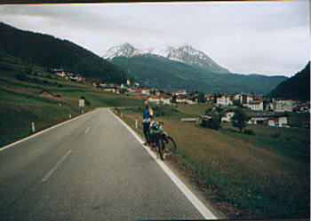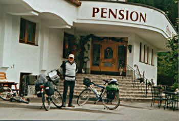 | Wir sind nach dem Frühstück um 7.30 Uhr in Lermoos gestartet. Wir fuhren über Bieberwier auf die Fernpassbundesstraße (es war wenig Verkehr und es ging besser wie wir gedacht haben). Um 8.55 Uhr waren wir auf dem Pass und um 9.15 Uhr am Schloß Fernsteinsee. Dann ging es bergab bis Nassereith und sind dann weiter auf der Via Claudia Augusta bis Imst gefahren. Hier haben wir uns zwei Brötchen mit warmen Leberkäse gekauft. Von Imst fuhren wir die alte Landstraße nach Mils - ab hier befuhren wir wieder den Radweg über Zams nach Landeck. Von Landeck nach Prutz sind wir auf der Straße gefahren, ab Prutz ist die Straße für Radfahrer gesperrt. Dann sind wir der Via Claudia Augusta dem Inn entlang gefahren, bis wir bei 87 gefahrenen km um 15.00 Uhr in Pfunds ankamen. In der Pension "Zur Schönen Aussicht" haben wir gleich ein schönes Zimmer gefunden. Die Wirtsleute waren sehr nett. Das Zimmer kostete 22 Euro p. Person. Jetzt mußten wir noch über den Reschenpass, dann waren wir in Südtirol. | |