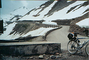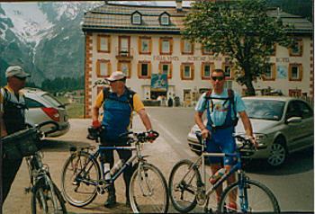 | Am Samstag, den 19.06.04 sind Peter und ich zur Krönung unserer Algundfahrt von dem Hotel "Zur Schönen Aussicht", dass Gustav Thöni gehört, mit dem Rad auf das 2763m hohe Stilfersjoch gefahren. Gestartet sind wir an der Kehre 44 bei 1530 hohen Metern. Dann sind wir die 15 km und 44 Kehren in 2 1/2 Stunden auf das 2763m hohe Stilfersjoch gefahren. Zum Ausgangspunkt fuhren wir in nur 30 Minuten zurück. Am Ziel rief es aus vielen Motorradfahrer-Kehlen: "HURRA SIE SIND DA !!!" | |