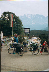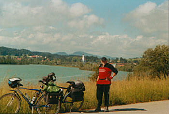 Start 7.30 Uhr Landsberg a. Lech. Auf dem Radweg an der B 17 ging`s bis Römerkessel (kleines Gut) bis hierher sind es 7,5 km, dann rechts ab nach Asch über Leeder nach Denklingen-Dienhausen-Schwabsoien-Schwabbruck-Huttenried über die B 472 nach Burggen. Wir haben Schongau links liegen gelassen. Dann von Burggen der Romantischen Straße entlang nach Dessau, dem Lechstausee Urspring, nach Lechbruck (eine sehr schöne Straße). Von Lechbruck, Prem bis Küchele (kleine Ortschaft) haben wir hier die Romantische Straße verlassen bis Halblech. Dann wieder der Romantischen Straße weiter, am Bannwaldsee vorbei nach Schwangau. Von hier nach Hohenschwangau am Alpsee entlang (steile Strecke - wir mußten teilweise schieben) über eine alte Zollstrecke nach Pinswang in Österreich. Von Hohenschwangau fuhren wir dann die Via Claudia Augusta, einer alten Römerstraße entlang. Von Pinswang über Ober-Pinswang nach Reute. Hier wollten wir eigentlich Übernachten, aber da es noch früh am Tag war, fuhren wir noch weiter. Es ging an der Ruine Ehrenberg durch das Tor der Klause nach Heiterwang. Die Schotterstraße verlief ab Katzenmühle steil bergauf und mußten deshalb teilweise auch schieben. Ab Heiterwang über Bichelbach-Lähn-Ober-Untergarten bis Lermoos. Die Strecke war ein guter Radweg. Wir kamen um 15.30 Uhr in Lermoos an. Nach 108 gefahrene km fanden wir dort gleich eine Unterkunft. |